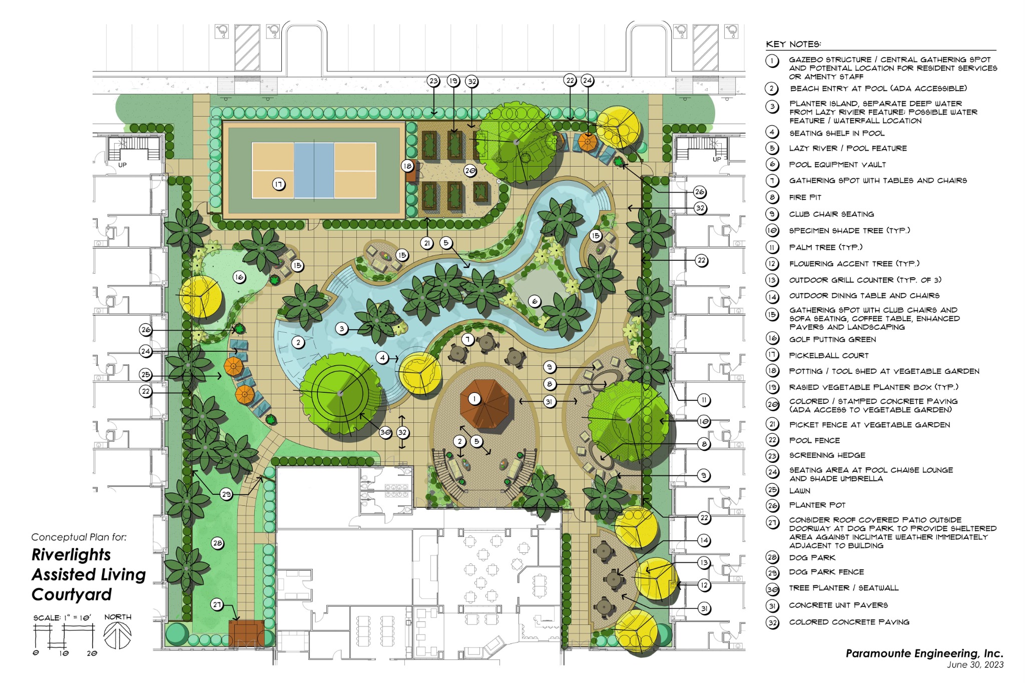 The Luminance Independent Senior Living at Riverlights Wilmington North Carolina-Courtyard Concept Plan