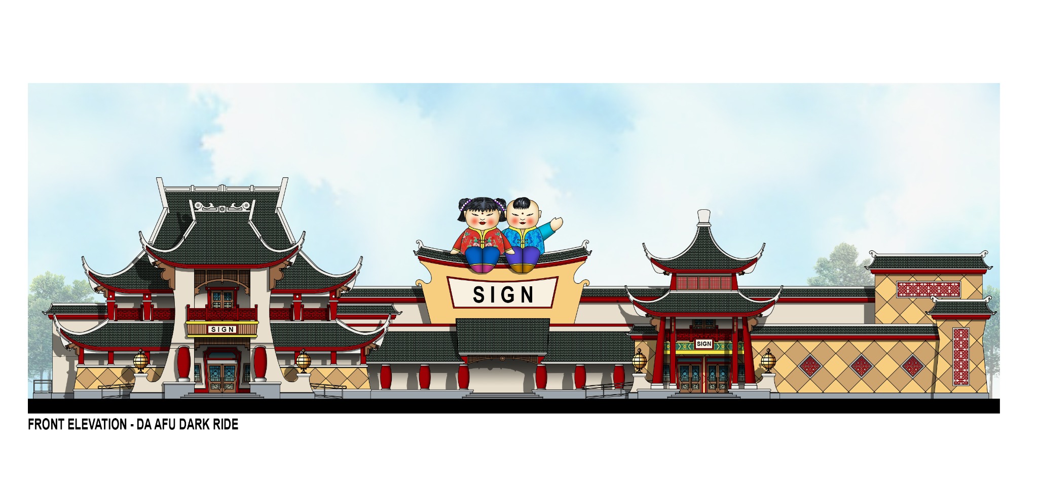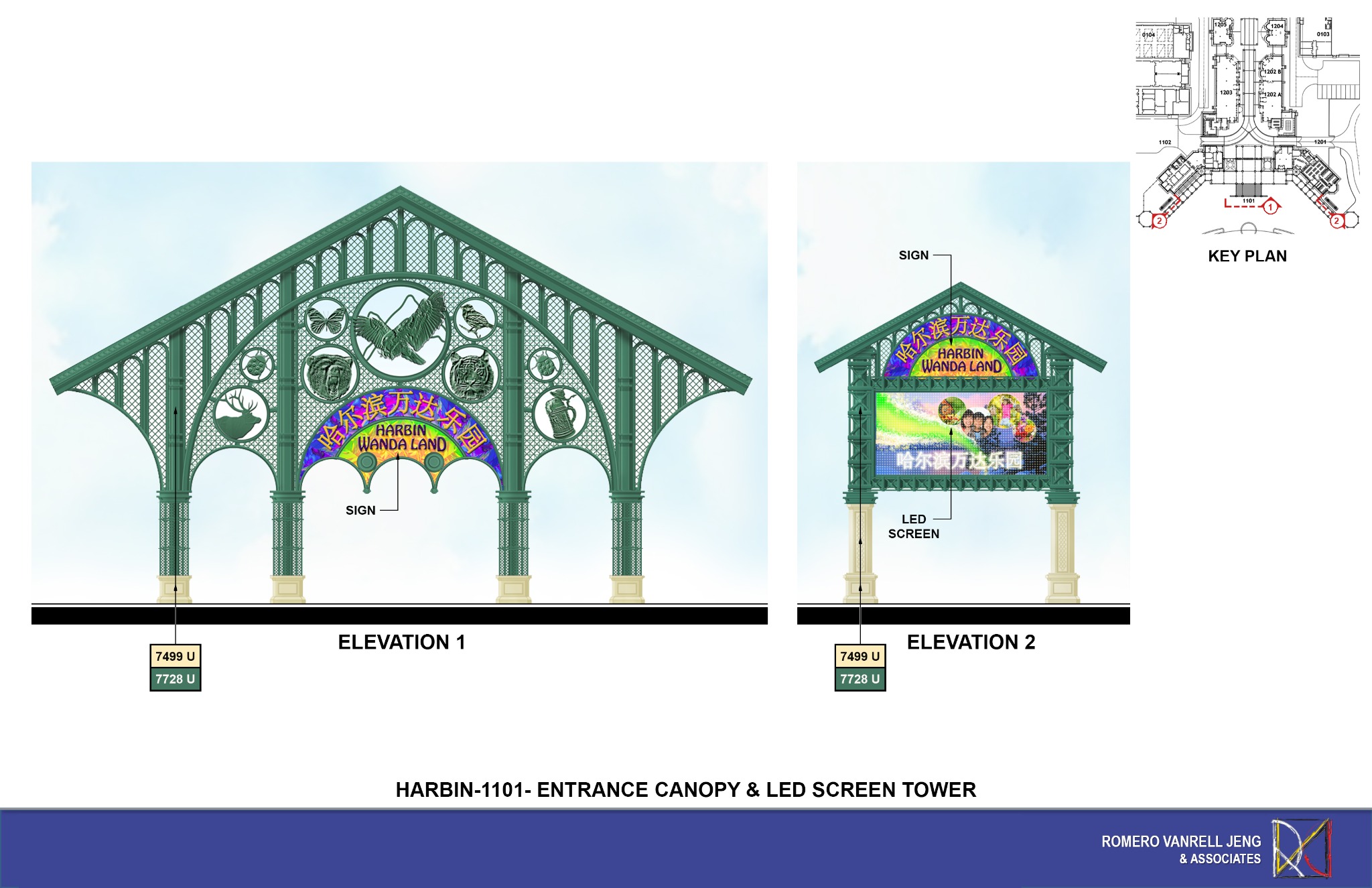 Harbin-1101-Entrance Canopy & LED Screen Tower-Elevation